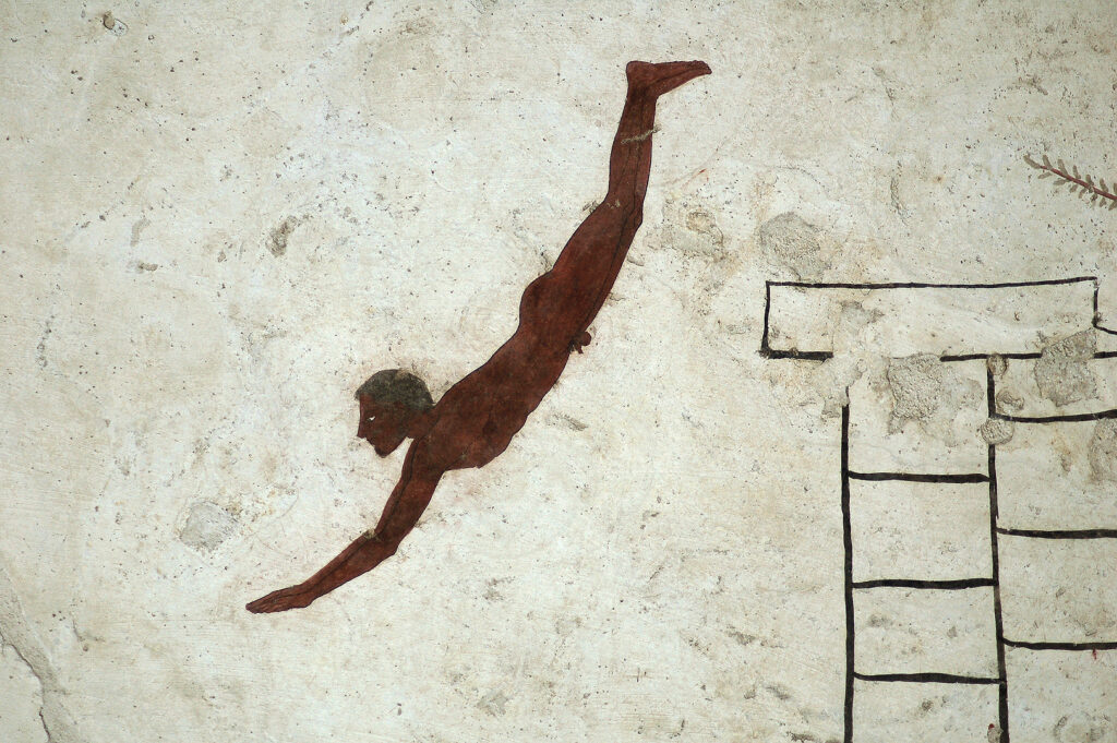 Vrijzinnige Miniaturen · Vrijzinnige Miniatuur blog 375 Foto: Hans van Deursen; Graf van de duiker, Paestum (480 v. Chr.) Vrijzinnige Miniatuur 375 Geschreven door Carolien Morée Voorgelezen door Gert van Drimmelen Geluidsmontage Seth Mook Thema: Waag ’t er op 3 februari 2026 Titel: Durf in twee gedaanten ...